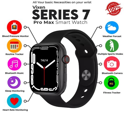 • Material: Metal Body + Silicone Strap• Model Number: 7 Series Pro Max• Product Features: Bluetooth Applicable, Waterproof, IP67 Dustproof• Charging Time of Device: 1 Hour• Battery Timing: 4 Hours• Package Includes: 1 x Watch• Note: Please ensure to follow the instructions provided in the user manual for proper usage and safety precautions.